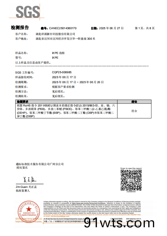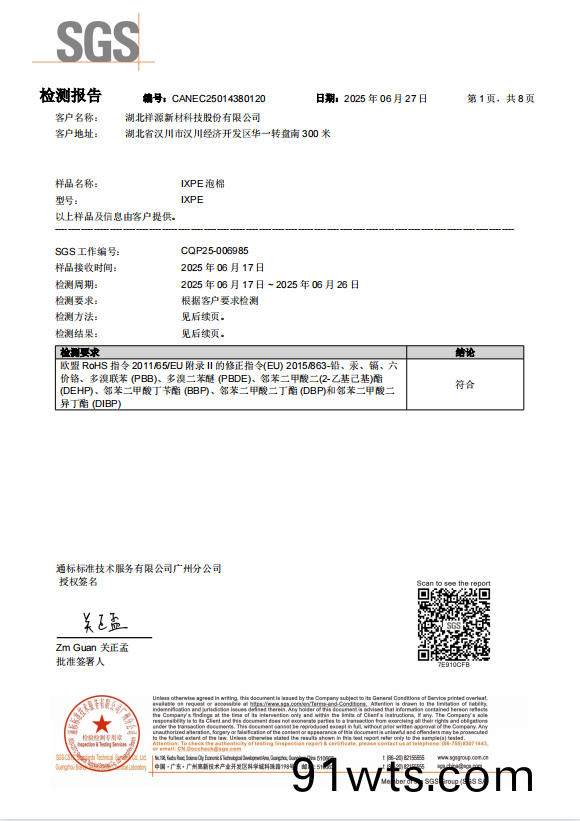 IXPE 白色泡(pao)棉 ROHS 检测报告