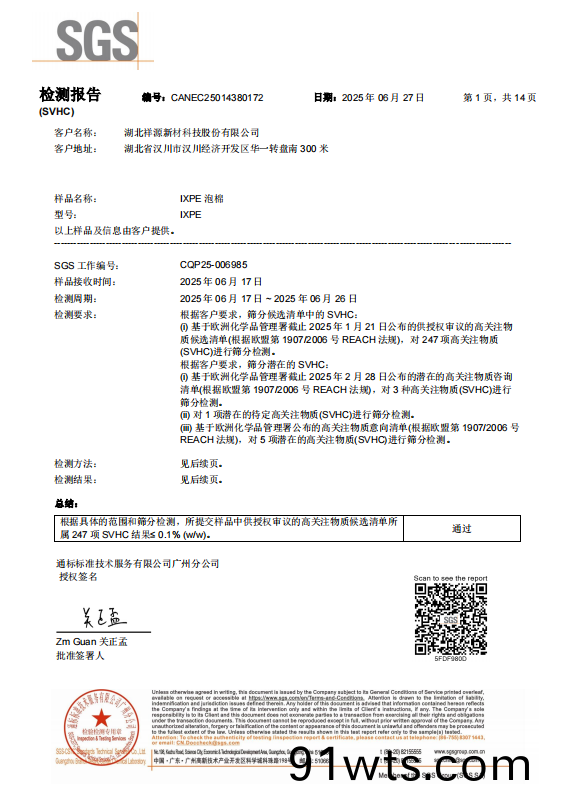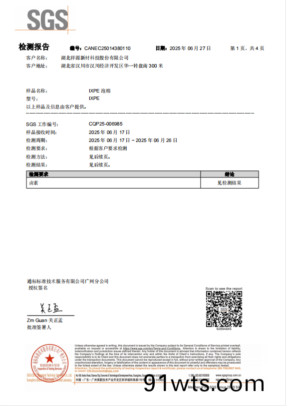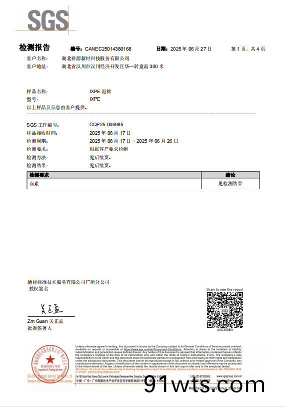 IXPE 白色泡棉 卤素 检测报(bao)告(gao)