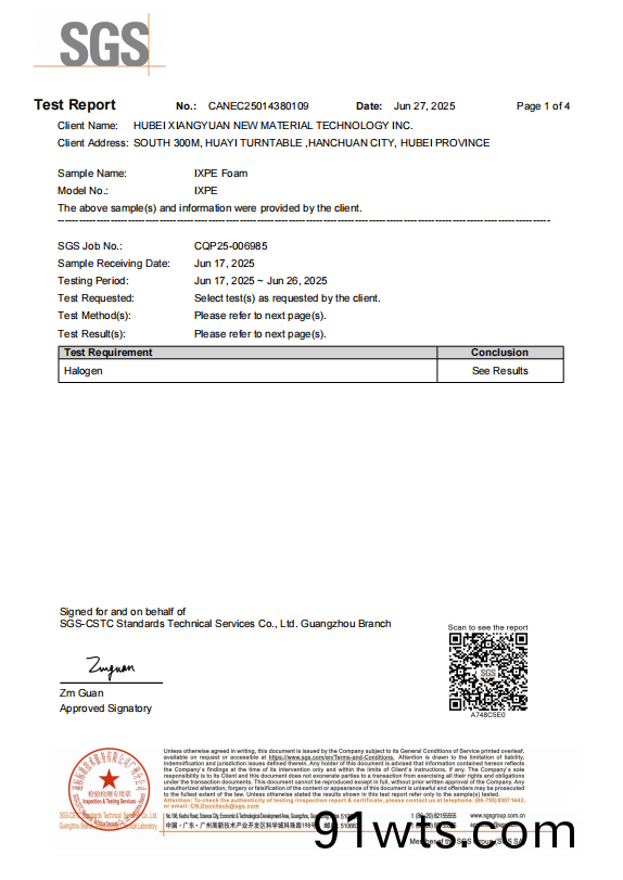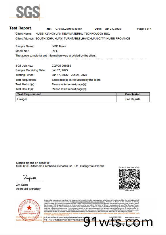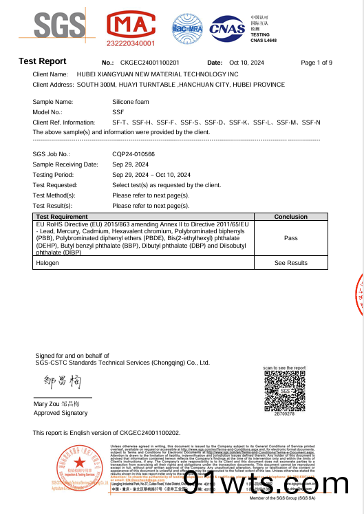 SSF Silicone foam halogen report