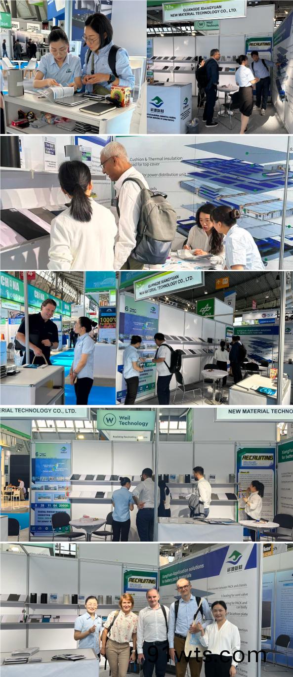 On June 18, the annual European Battery Show and Electric Vehicle Technology Show 2024 officially opening at the Stuttgart Exhibition Center in Germany. Xiangyuan New Materials made its debut at the event, displaying power/energy storage battery internal and external sealing, heat insulation, support, cushion, thermal insulation, flame retardant, fireproof and other materials, as well as high-performance green material solutions for multiple application fields.