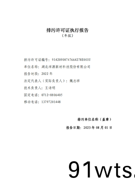 Báo cáo thực hiện giấy phép xả thải vật liệu mới Xiangyuan 2022