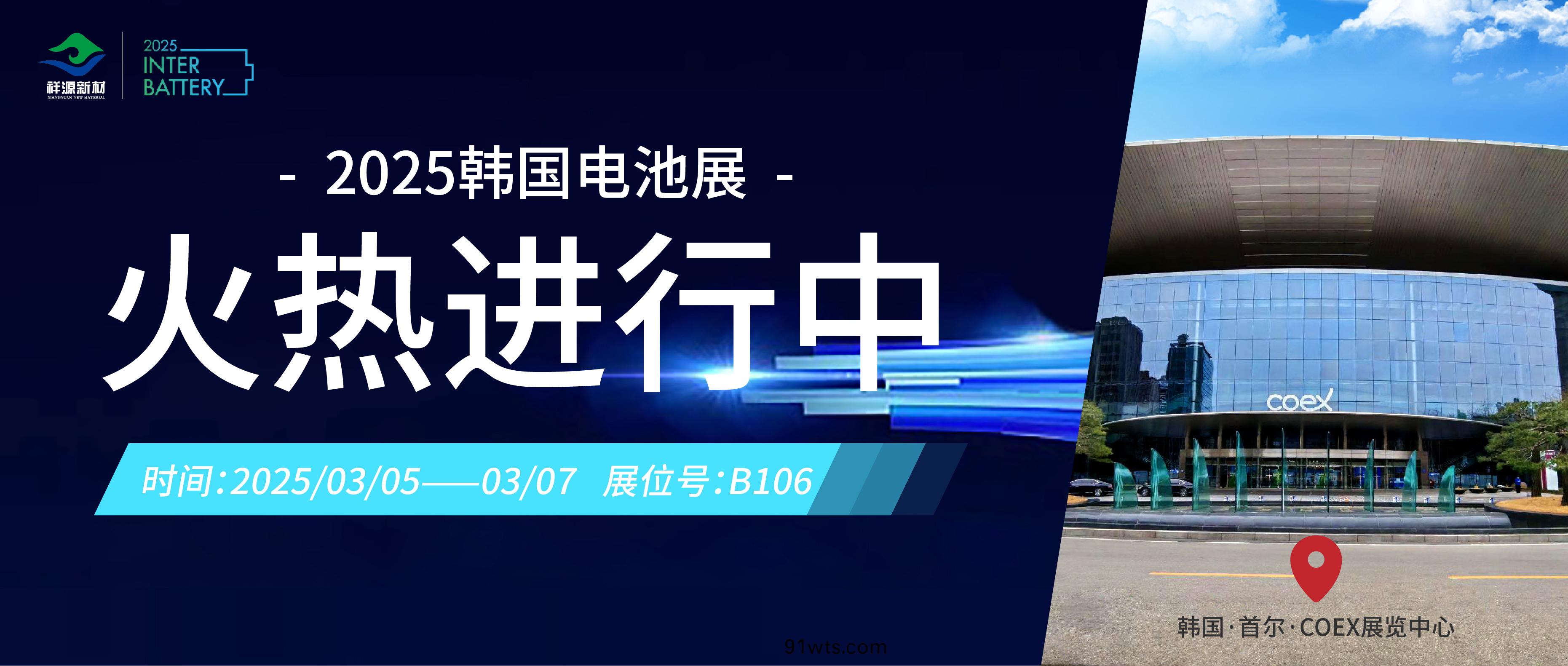 展会(hui)邀请丨(gun)祥源(yuan)新材诚邀您共赴2025韩国电池展,率先(xian)解锁电(dian)池材料新方向!